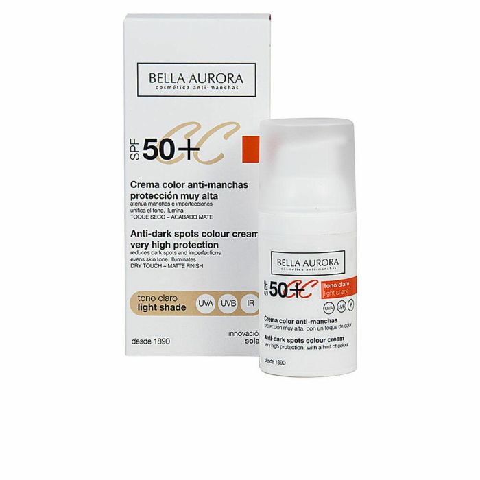Bella Aurora CC Cream Anti-Manchas SPF 50+ Tono Claro Perfeccionadora Unifica Tono Antiedad Resistente al Agua Hipoalergénica 30 ml