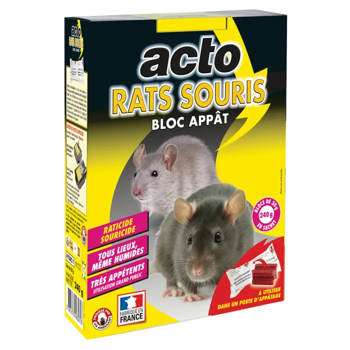 Acto ACT3361670465818 Cebo para Ratas y Ratones, 12 Bloques de 20g, Muy Atractivo, Control Eficaz Roedores, Total 240g