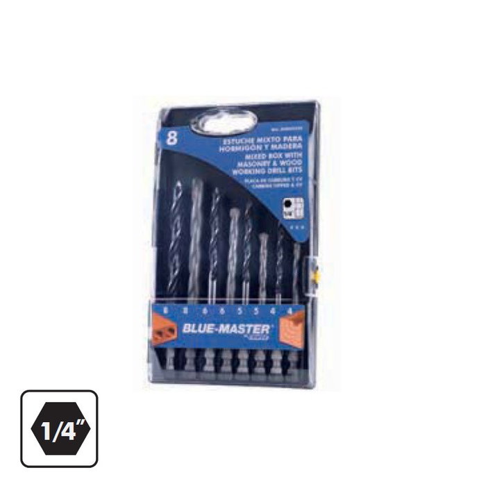 CELESA Estuche Mixto 4 Widia y 4 Madera Brocas 1/4 4-5-6-8mm con Mango Hexagonal 1/4