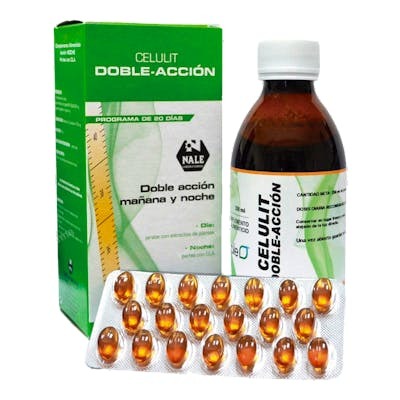 NALE Celulit Doble Accion Jarabe 250Ml + 20Perlas. Desinfiltra grasas, líquidos y toxinas. Reduce piel de naranja y grasa corporal.