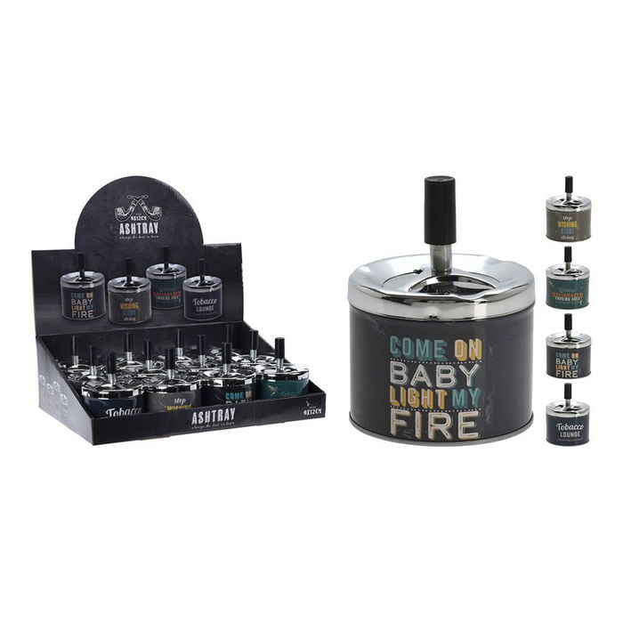 Cenicero con sistema giratorio para almacenar la ceniza, acero cromado ø9 x 12 cm, modelos surtidos vintage. expositor 12 unidades