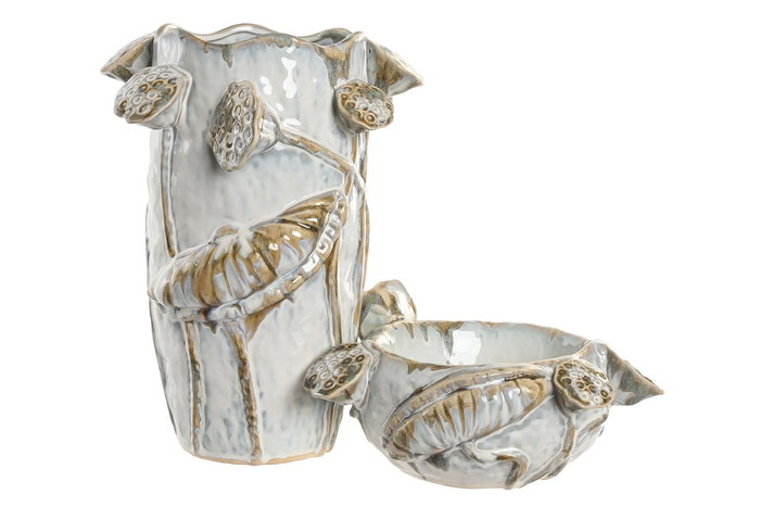 DKD Home Decor Centro de Mesa Shabby Blanco Azul Cerámica 28 x 25 x 13 cm
