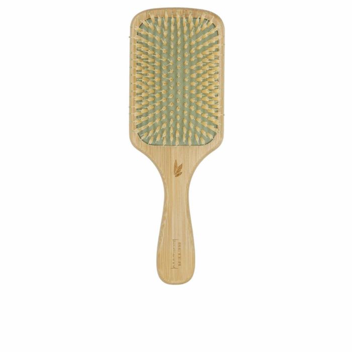 Descubre el cepillo neumático raqueta con cerdas de nylon de la colección BAMWOOD de Beter, diseñado para un desenredado suave y eficaz. Perfecto para cabello húmedo o seco, este cepillo es ideal para todo tipo de melenas, especialmente para cabellos lisos.