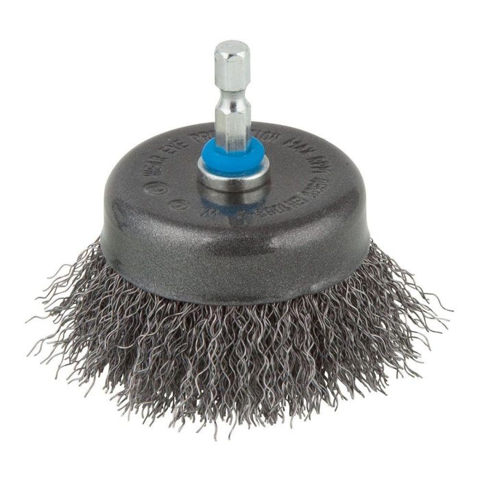 Wolfcraft 2108000 Cepillo de Copa de Alambre de Acero Ø75 mm, Vástago Hexagonal 1/4" 6.35 mm, Longitud de Alambre 25 mm, para Amoladora