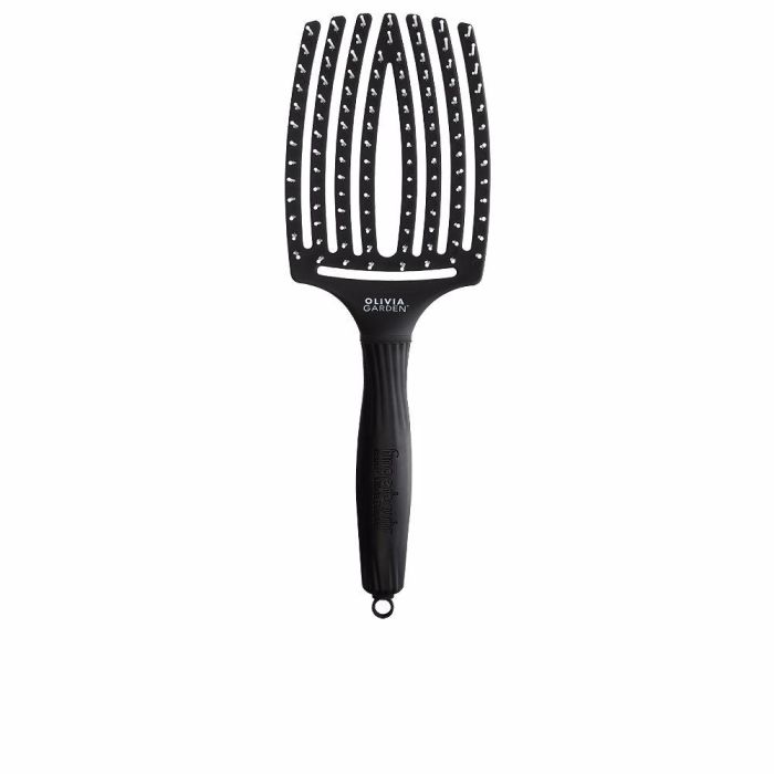 Olivia Garden FINGERBRUSH Large Cepillo para el Pelo Curvado Ventilado de Gran Tamaño con Mango Ergonómico para Desenredar y Peinar, Secado Rápido, Color Negro, 1 Unidad