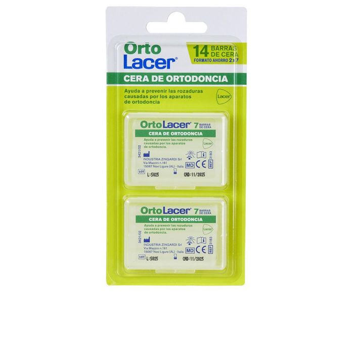 Lacer Ortodental Cera de Ortodoncia Pack 2 x 7 Barras para Aliviar Rozaduras e Irritaciones Bucales