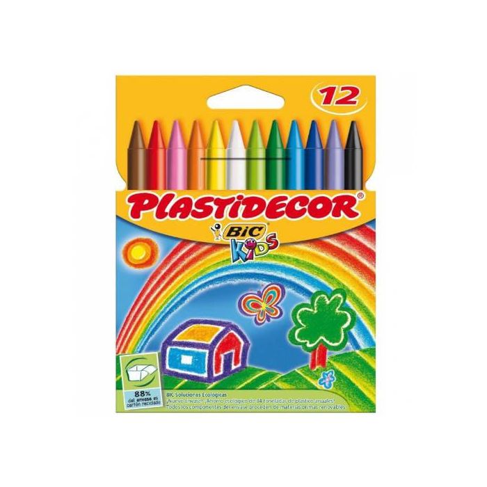 Plastidecor Lápices de Cera Caja 12 Colores Surtidos para Uso Escolar