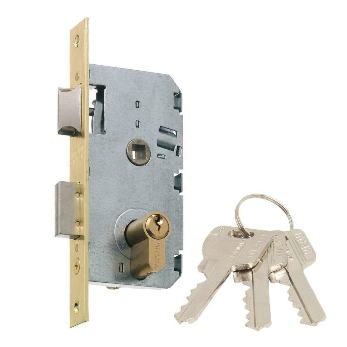 MCM 2501-235an311 Cerradura de embutir 1 punto acabado latonado entrada 35mm con 3 llaves