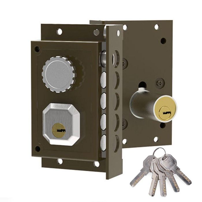 Dorcas C-c911d Cerradura de sobreponer derecha con tirador marrón, cilindro redondo, 5 llaves de seguridad