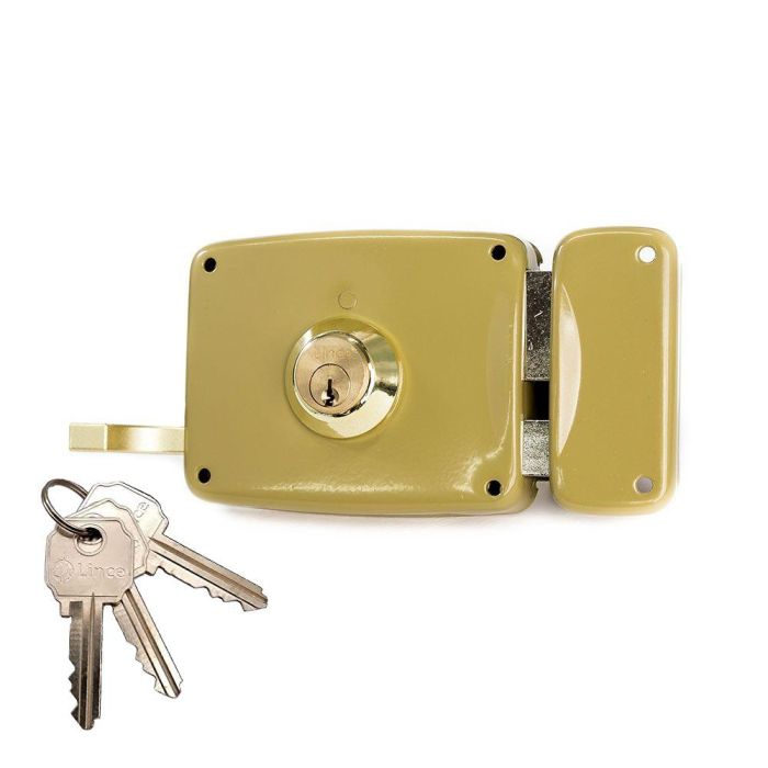 Lince 95125ahe10d Cerradura sobreponer con cilindro, entrada 100mm, mano derecha, acabado bicapa-oro
