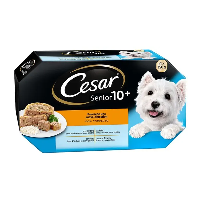 Cesar Multipack Senior Comida para Perros con Carne en Trozos y Salsa, Solo Ingredientes Naturales, Caja 6x4x150 gr