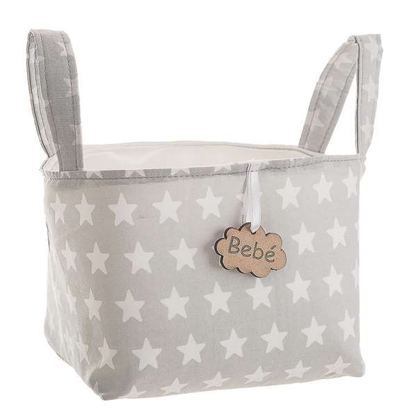 Creaciones Llopis Cesta Asas Estrellas Gris 17 x 13,5 x 20 cm