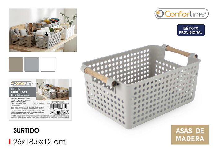 Confortime Cesta Multiusos Asas Madera 30.2 x 18.9 x 12.9 cm (24 Unidades)
