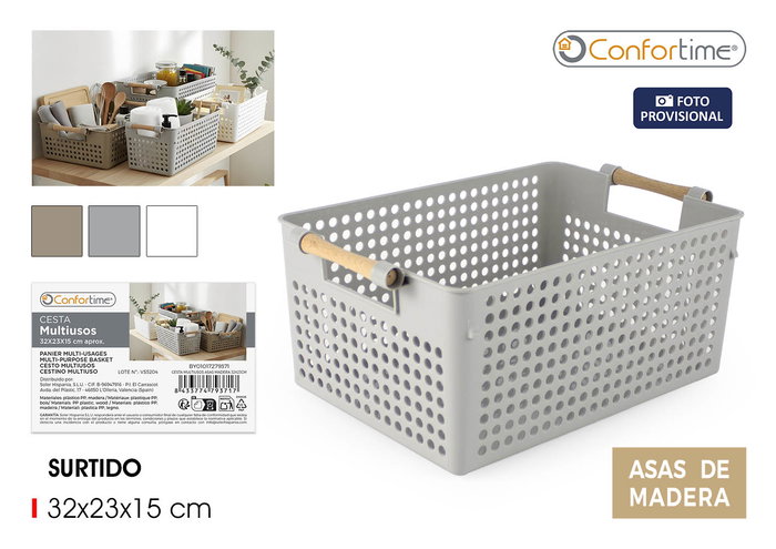 Cesta Multiusos Asas Madera 32X23Cm Confortime