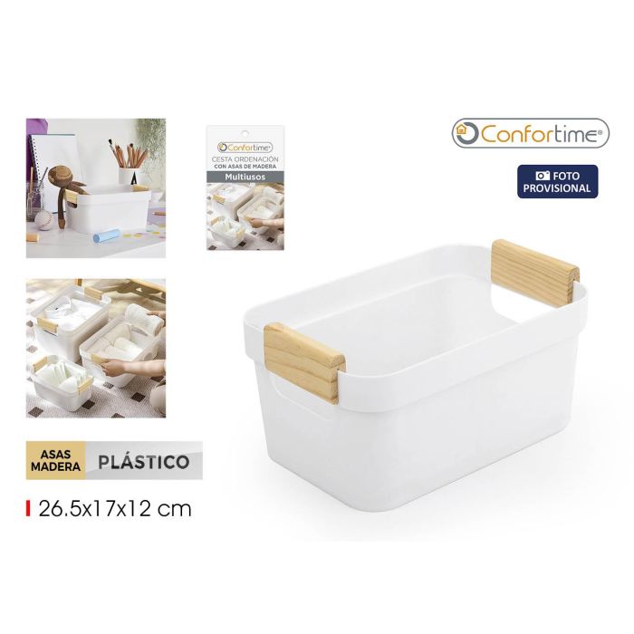 Cesta Plastic.Multiusos Asas Madera Confortime