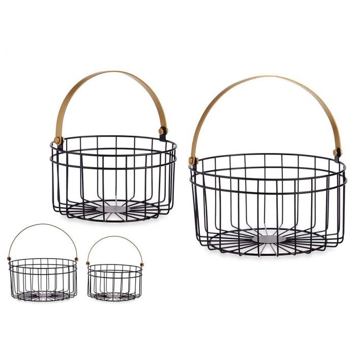 SET DOS CESTAS REDONDAS NEGRAS CON ASA DORADA