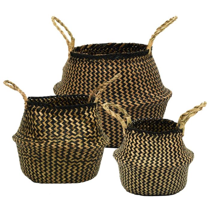 - Conjunto de tres cestas thai bicolor hechas de junco.