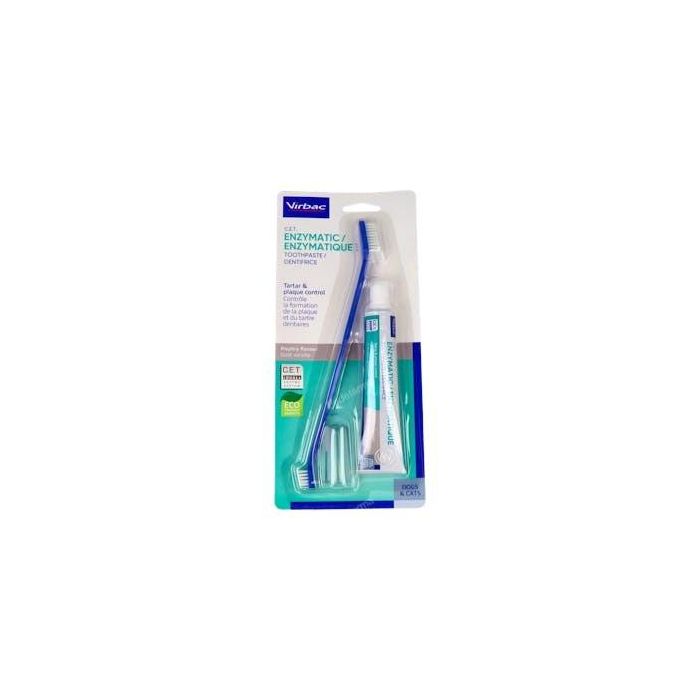 Virbac Cet Kit Dentifrico Enzimatico Pasta + 2 Cepillos para Perros y Gatos