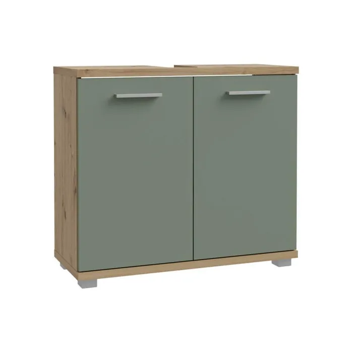 CHAMP - Mueble bajo fregadero - 2 puertas - 69,9 x 28,9 x 62 cm - Roble artesanal / Verde salvia - FORTE