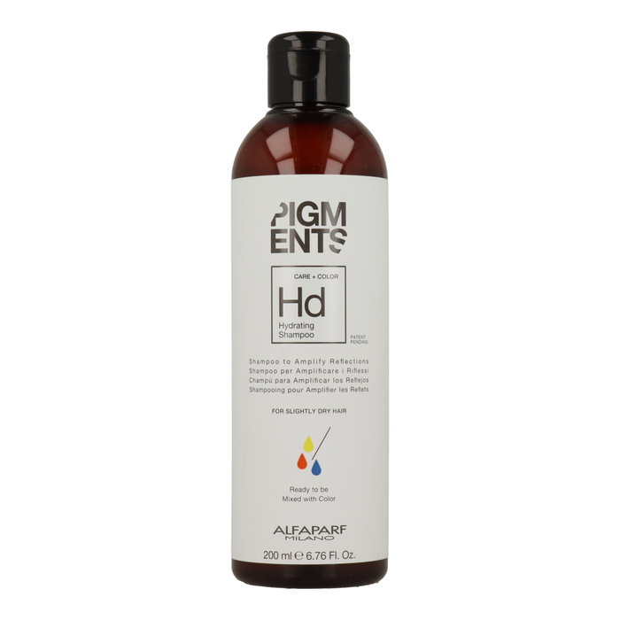 El Pigments Hydrating Champú de Alfaparf Milano es un champú profesional formulado para limpiar suavemente mientras hidrata el cabello tratado con pigmentos o coloración personalizada.