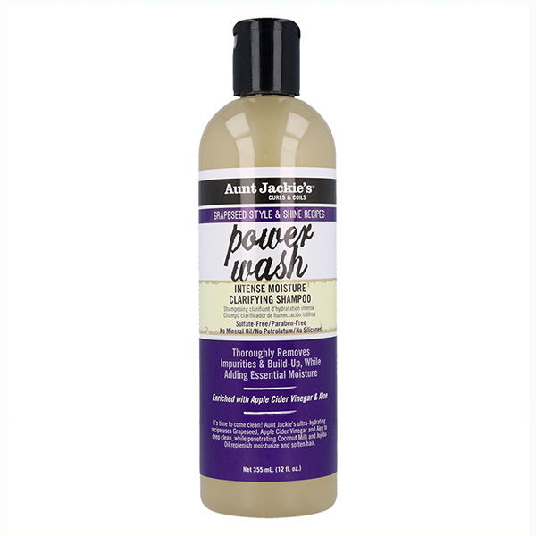 Aunt Jackie's Curls & Coils Grapeseed Power Wash Champú Aclarador Hidratante Sin Sulfato para Cabello Rizado 355 ml/12 oz