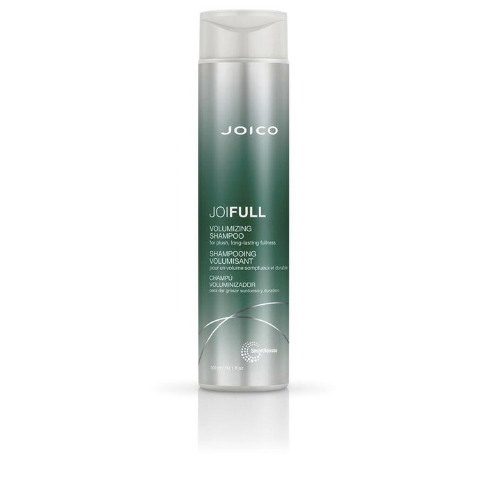 El champú voluminizador JOIFULL VOLUMIZING de JOICO limpia y elimina las impurezas de los cabellos finos sin aplastar ni aportar peso. Este limpiador, entrega una base prístina para crear cuerpo suntuoso, voluminoso y ligero como preparación para un cabello abundante, sano y de apariencia natural.