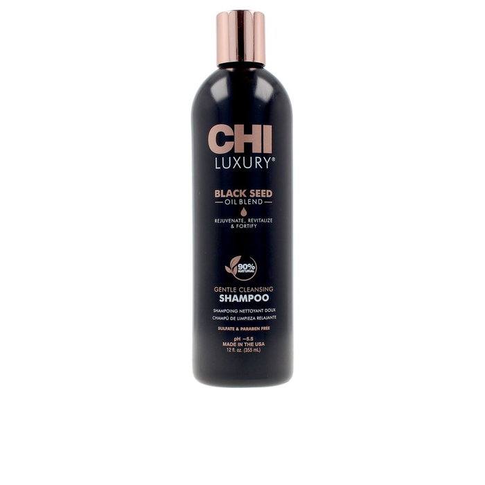 Champú hidratante CHI LUXURY BLACK SEED OIL gentle cleansing shampoo de Farouk. Descubre el champú limpiador suave CHI LUXURY BLACK SEED OIL de Farouk, diseñado para ofrecer una limpieza delicada a tu cabello. Su innovadora fórmula, enriquecida con aceite de semilla negra y poderosa en antioxidantes, genera una lujosa espuma que elimina las impurezas y revitaliza cada hebra, dejando tu cabello grueso y lleno de volumen. Con cada lavado, tu melena se verá más fuerte y radiante, asegurando una apariencia saludable y luminosa. ¡Dale a tu cabello el cuidado que merece!