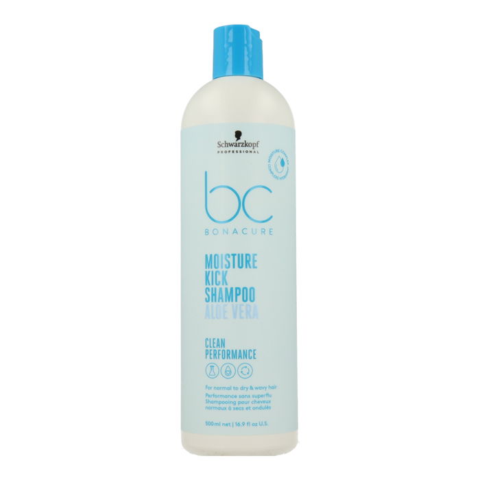 Champú profesional de la gama BC Moisture Kick de Schwarzkopf con Aloe Vera diseñado para cabellos de normales a secos o con textura ondulada. Limpieza suave hidratación prolongada y acabado ligero ideal para salones academias y distribuidores.