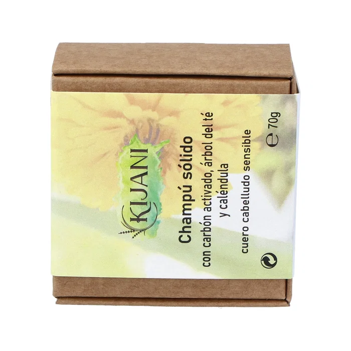 KIJANI Champu Solido Cabello Sensible Carbon Activado 70G con Aloe Vera y Calendula para Psoriasis y Picor