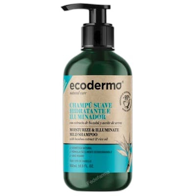 Ecoderma Champú Hidratante Iluminador Brillo con Extracto de Bambú y Aceite de Arroz para Todo Tipo de Cabello 500 ml