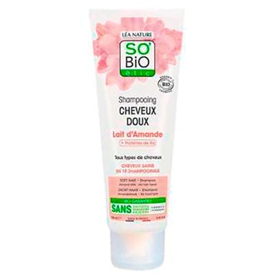 SO'BIO ETIC Champu Suave Leche Almendras y Proteínas de Arroz para Cabello Hidratado con Brillo Natural 250 Ml