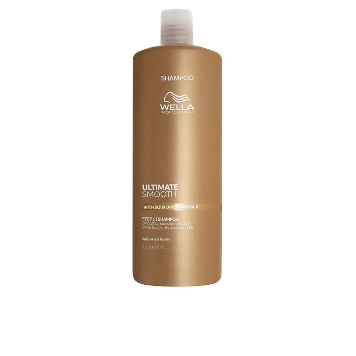 Descubre el poder del Champú Ultimate Smooth de WELLA PROFESSIONALS, un producto de alta calidad diseñado para transformar tu rutina de cuidado capilar. Este champú de 1000 ml no solo limpia a fondo tu cabello, sino que también lo nutre en profundidad, proporcionándole una extraordinaria suavidad y un brillo radiante. Gracias a su innovadora tecnología Metal Purifier, es capaz de eliminar residuos metálicos y otras impurezas acumuladas en el cuero cabelludo, combatiendo eficazmente el encrespamiento.