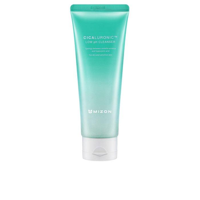 Limpiador Facial CICALURONIC low cleansing foam de Mizon. Este limpiador espumoso contiene el complejo exclusivo CICALURONIC™ y está formulado con más de un 90% de ingredientes naturales. Es un producto vegano diseñado para eliminar suavemente el sebo, las impurezas, el maquillaje y otros residuos de la piel, proporcionando una hidratación intensa sin causar irritación.