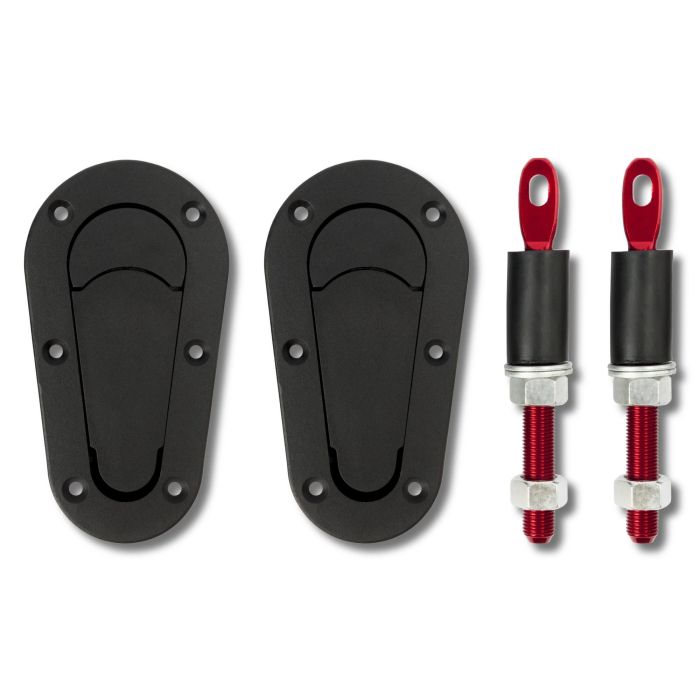 DIMENSIONES Y COLOR: Cierre capot rally de 11cm x 7cm en color negro.