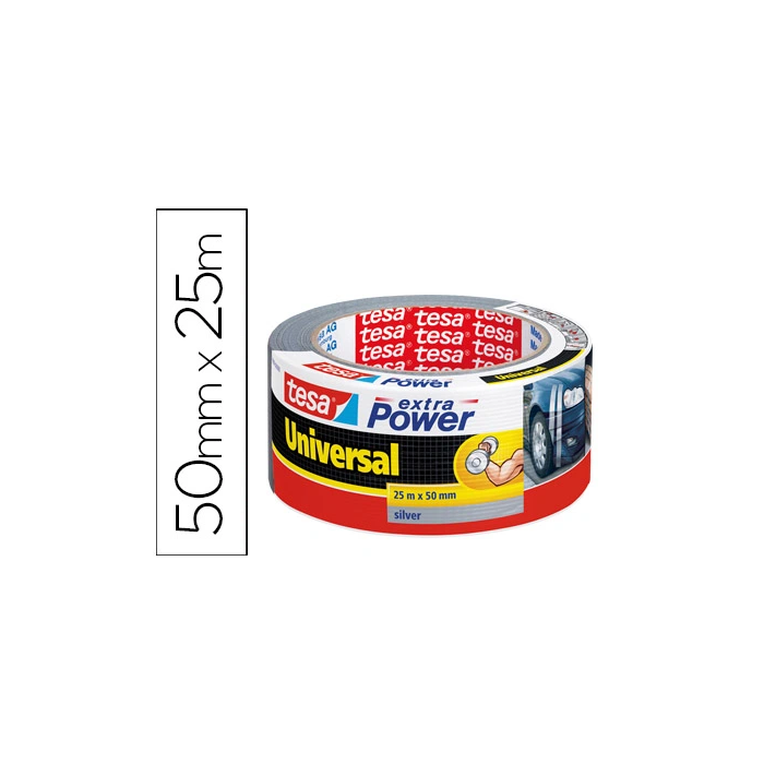 Tesa Cinta Adhesiva Americana Extra Power 25 mt x 50 mm Resistente y Universal Color Plata para Reparaciones y Hogar