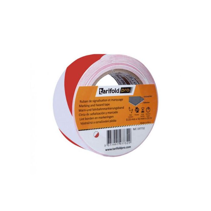 Djois Cinta Adhesiva de Seguridad para Marcaje y Señalización de Suelo 33 mt x 50 mm Blanco/Rojo