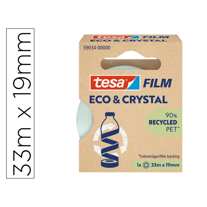 Tesa Film eco&cristal Cinta Adhesiva Transparente 33 mt x 19 mm para Embalaje y Reparación Resistente al Desgarro