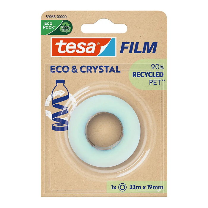TESA Eco & Crystal, 33 m, Tereftalato de polietileno (PET), 19 mm