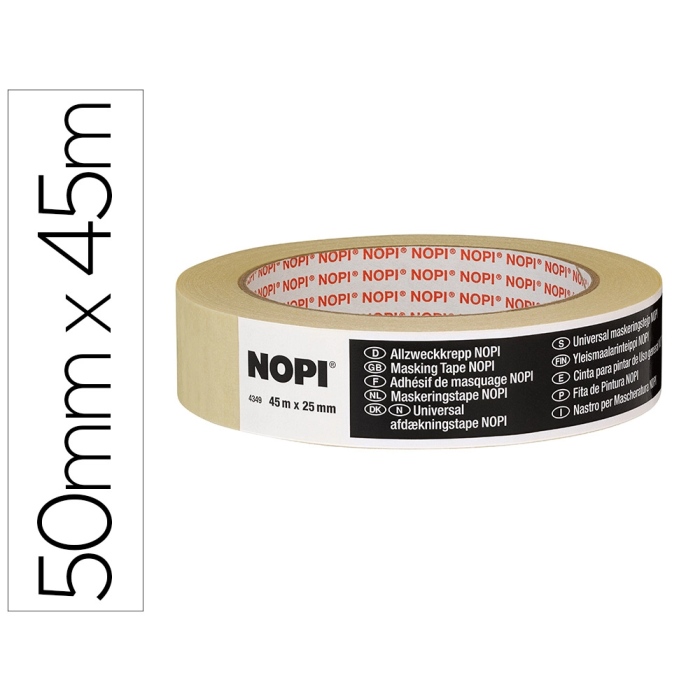 Tesa Cinta de Pintor NOPI 4349 para Enmascarar y Sellar, Adhesivo Caucho Natural, 45 m x 50 mm