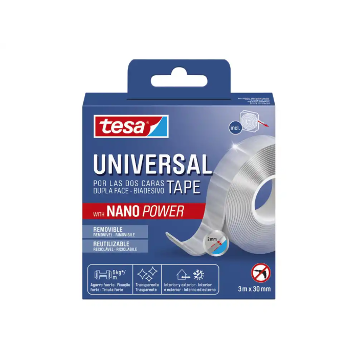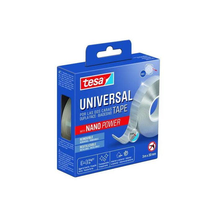 Tesa Cinta Adhesiva Doble Cara Nano Universal Transparente 3 mt x 30 mm