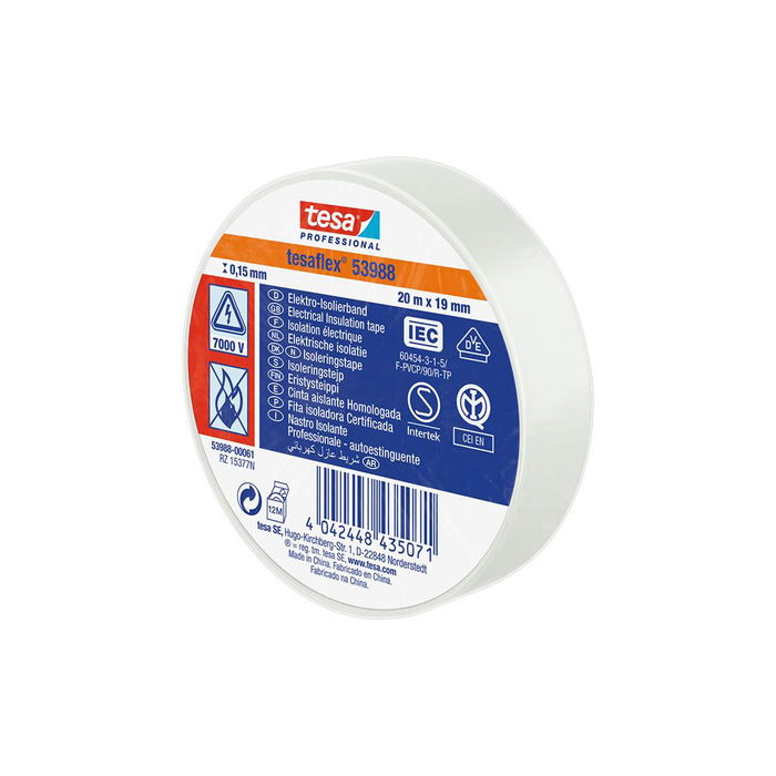 Tesa Cinta aislante homologada blanca 19 mm x 20 m