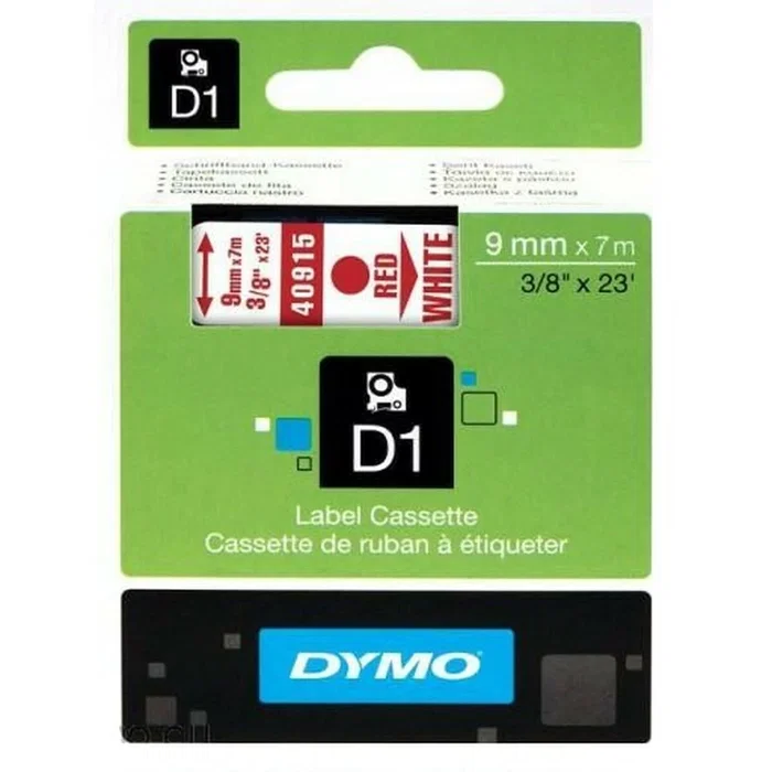 Dymo Cinta De Transferencia Termica D1 40915. Rojo Sobre Blanco De 9 mmx7M. Poliester Autoadhesiva