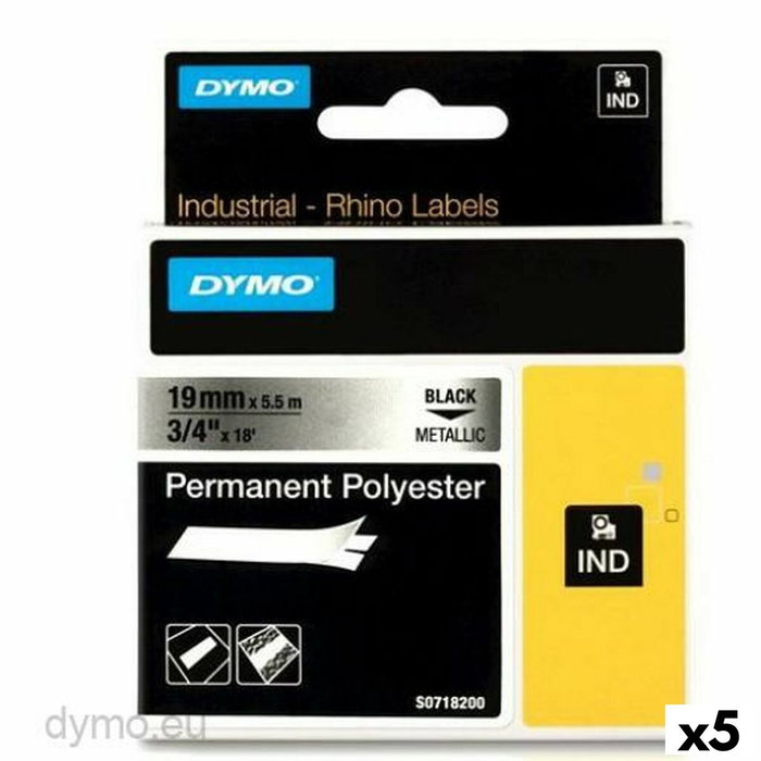 Cinta Laminada para Rotuladoras Rhino Dymo ID1-19 19 x 5,5 mm Negro Gris Autoadhesivas (5 Unidades)