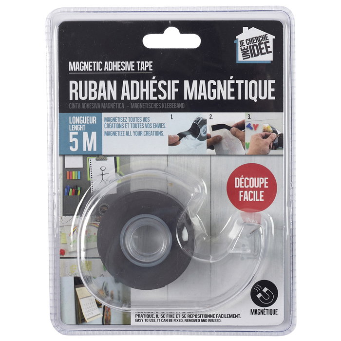 Je cherche une Idee Cinta Magnética Adhesiva 500 cm Práctica y Reposicionable con Portarrollos