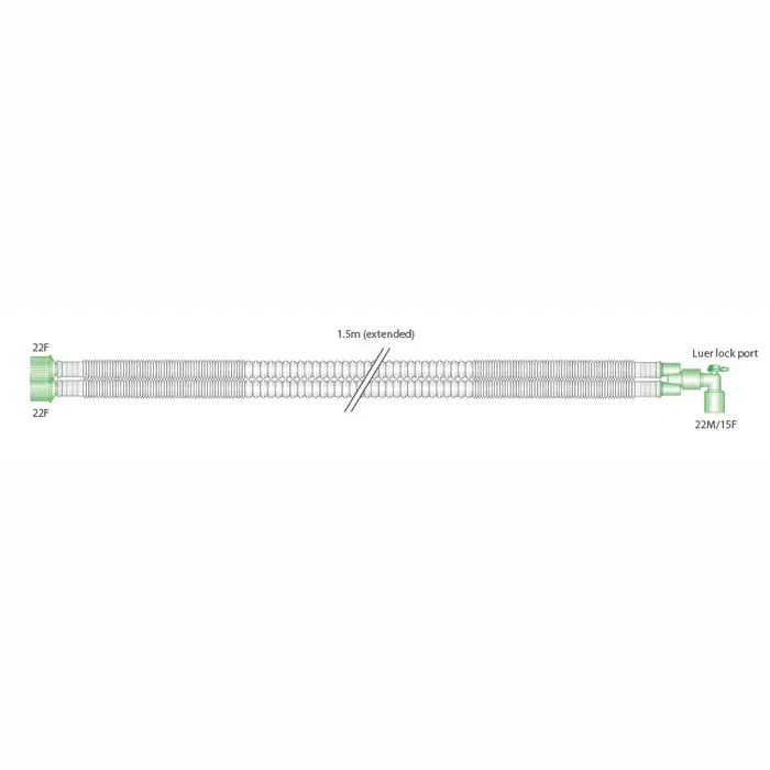 Circuito Respiratorio Extensible de 15 mm de la marca Intersurgical. Diseñado para ofrecer un rendimiento confiable en aplicaciones de soporte respiratorio.