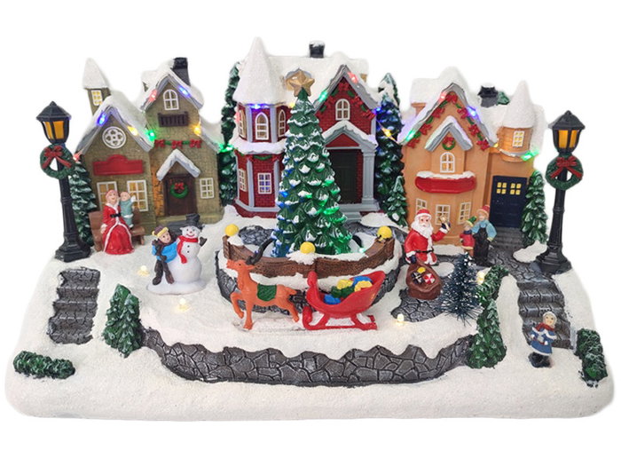 DKD Home Decor Ciudad Navidad Tradicional con Movimiento Musical, Luces LED, Multicolor, Resina, 18.5x32x19 cm
