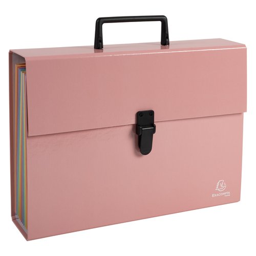 Maletín con asa de 18 departamentos reforzados en colores surtidos y cierre con botón clip. Un clasificador con cubierta en papel plastificado Aquarel con interior en cartulina de 210 g/m². Medidas: 320 x 240 mm.