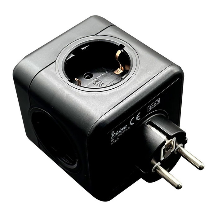 Clavija modular 5 tomas schuko 2p+t 16 a 3680 w 250 v~ negra compatible con ref 40292, 40293