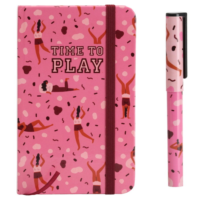 - Medidas: libreta: 14x9 cm, h.1,2 cm; bolígrafo: d.1,3 cm, h.13,2 cm