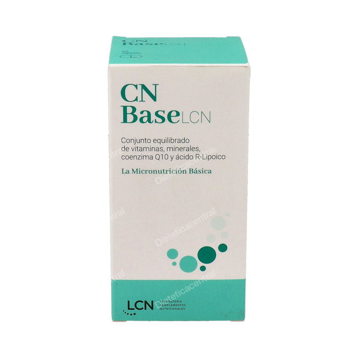 Indicaciones: Aporta los nutrientes básicos en una adecuada combinación para que actúen entre ellos de forma sinérgica, con las formas más activas y biodisponibles, ayudando al bienestar general del organismo. Apto para veganos. Cn base lcn es un suplemento dietético que ofrece una combinación de vitaminas y minerales en sus formas efectivas y biodisponibles, acompañados por la presencia de la coenzima Q10 y el ácido R-lipoico. ¿Cn Base Lcn, para qué sirve? Puede ayudar a que el cuerpo reciba una cantidad de vitaminas, que son esenciales para ayudar a mantener una buena salud y promueven el funcionamiento celular y corporal. CN Base puede proporcionar las vitaminas en su forma activa para que el cuerpo las pueda reconocer y utilizar de manera efectiva, apoyando así su rendimiento metabólico. La coenzima Q10 es una molécula presente en las células del cuerpo y es esencial para la producción de energía celular. Por otro lado, el ácido R-lipoico es un antioxidante que ayuda a proteger las células contra los daños causados por los radicales libres. Además, el ácido R-lipoico también es puede ayudar para la metabolización de la energía y el mantenimiento de un sistema nervioso en condiciones normales.